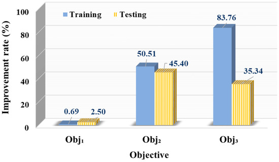 After 1000 iterations, NSGA-III produced 255 non-dominated solutions, demonstrating an effective balance among the competing objectives. The outcomes were analyzed in a 3D objective space (Figure 3), with the key observations summarized below: