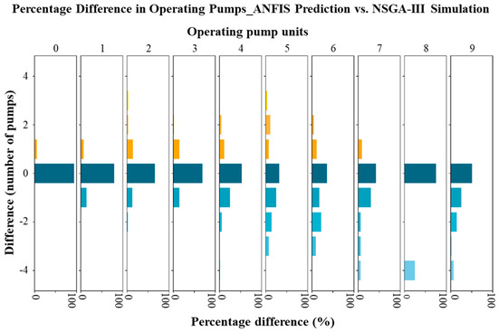 The percentage difference in the operating pumps predicted using the ANFIS and simulated by NSGA-III.