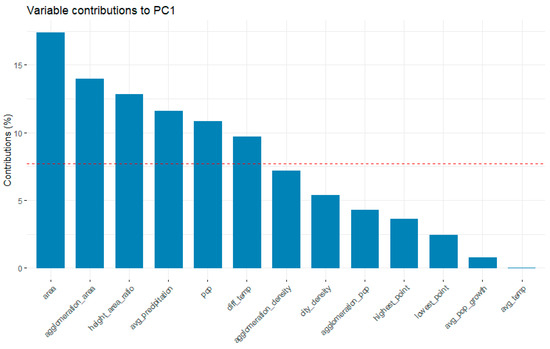 1. The area of a city, defined as the territory within the city’s administrative boundaries, is an important factor affecting its development [58]. A larger city area provides more opportunities for infrastructure development, the location of industrial plants and residential areas, and the creation of green areas and recreational spaces [59]. Rosenthal and Strange (2004) found that doubling the area of a city while maintaining the same population density leads to an increase in labor productivity by 2–10% [60]. Duranton and Puga (2013) emphasize that a city’s area affects housing affordability and transportation infrastructure, which in turn affect the city’s economic growth [61].