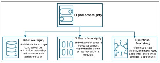 According to the literature [40], digital sovereignty comprises three main pillars, including operational sovereignty, software sovereignty, and data sovereignty, as seen in Figure 3.