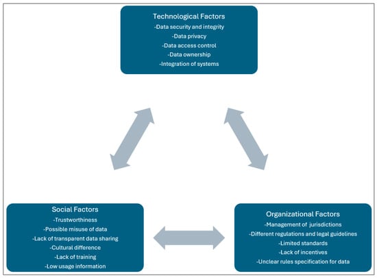 Issues related to the management of jurisdictions, including different regulations and legal guidelines, limited standards that improve data-driven solutions, and the lack of incentives and benefits, limit citizens’ interest in sharing their data [49]. As each citizen is a data owner or data producer, this only defines the right to access, use, or modify their datasets. The signing of legally binding contracts that are accompanied by organizational assurances for citizens as an indispensable requirement for data sharing does not enforce binding obligations over the complete lifecycle of the shared datasets. Also, there are unclear processes regarding technical and non-technical aspects relating to rules and specifications for data processing, continuity, and possible deletion [49].