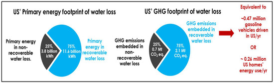 Primary energy footprint of water loss and greenhouse gas (GHG) footprint of water loss in 2015 for the US [8].