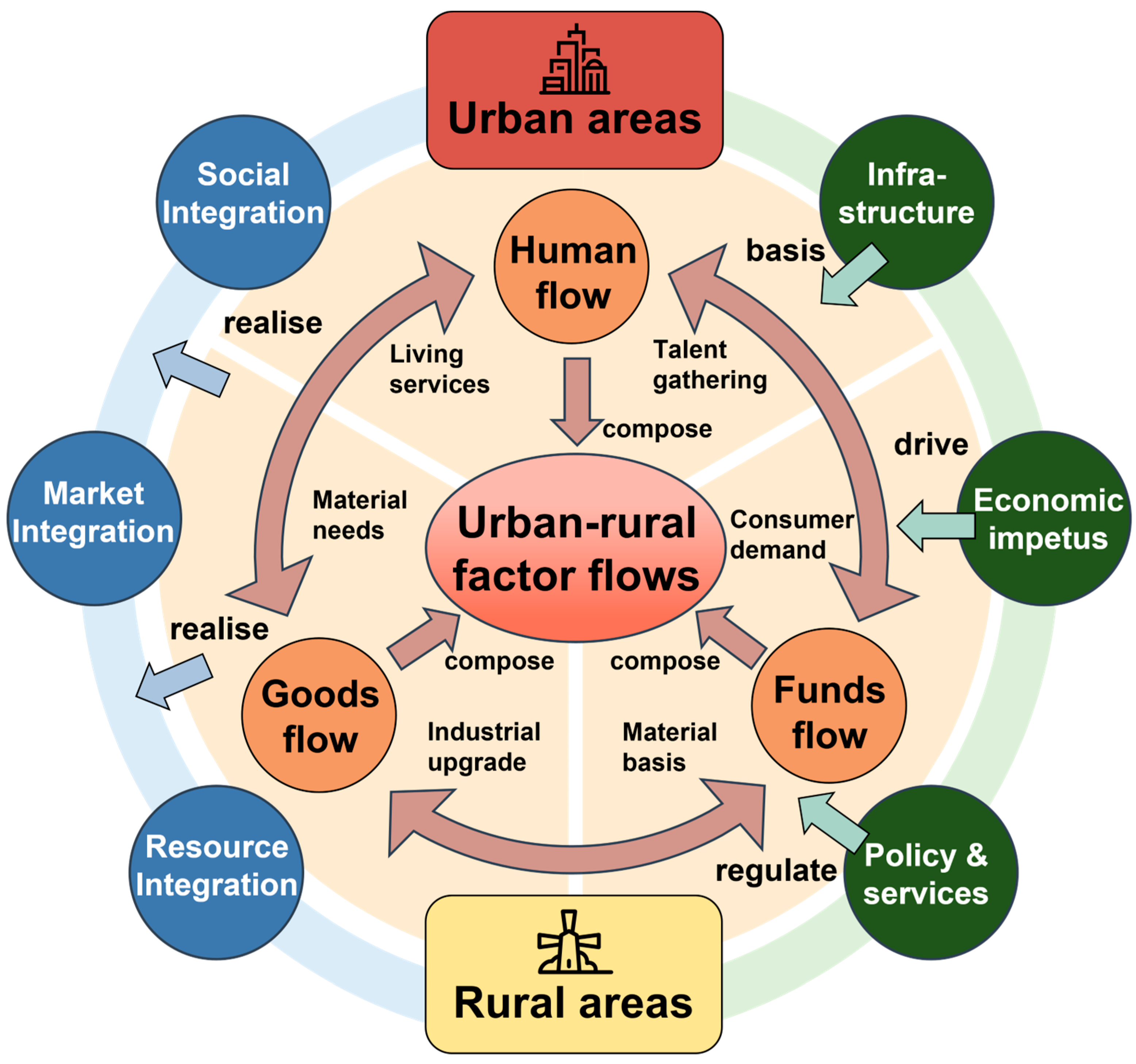 2.4. Theoretical Framework of Urban–Rural Factor Flows