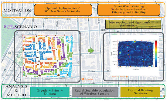 The proposed methodology follows a structured pipeline that transforms urban geospatial data into a fully connected and optimized wireless sensor network for smart water monitoring. This multi-stage process is tailored to the constraints of urban infrastructure and the operational requirements of scalable metering systems [