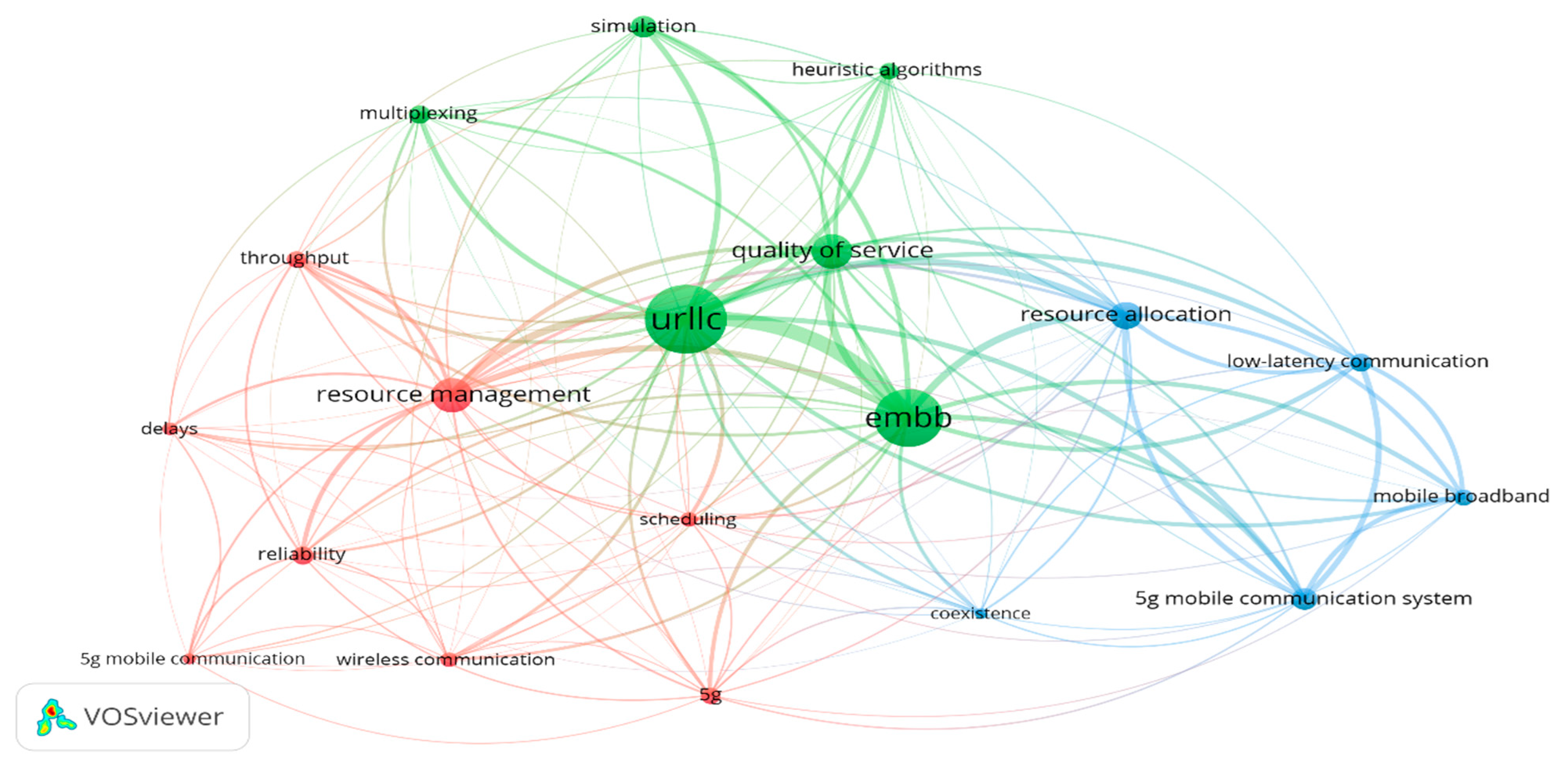 | String2 | ALL (scheduling) AND ABS (coexistence) AND (TITLE (eMBB) AND TITLE (URLLC)) OR TITLE (mmtc) AND ABS (5g) AND PUBYEAR > 2018 AND PUBYEAR < 2025 | 2019–2024 | Scopus | 33 |