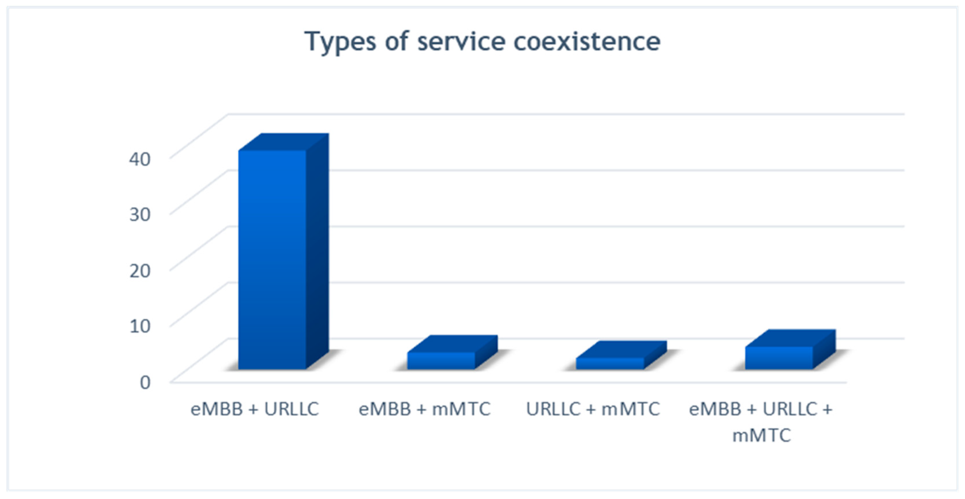 - Currently, research mainly focuses on eMBB-URLLC coexistence (81.25%), but mMTC integration is underexplored, highlighting gaps in addressing its scalability and reliability for future 6G applications.