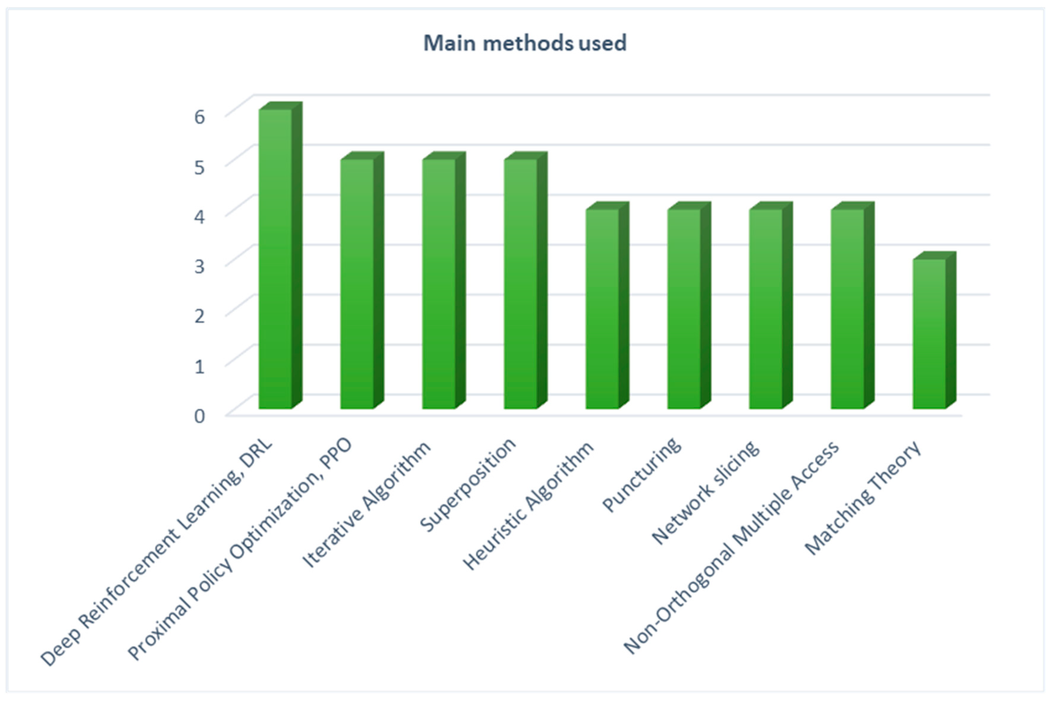 | PPO/DRL | Throughput, latency, reliability, energy efficiency, fairness | Adaptive and multi-criteria optimization versus training and stability requirements. | Difficulty in training in complex environments; strong dependence on an adequate reward function; slow convergence and high computational overhead. |