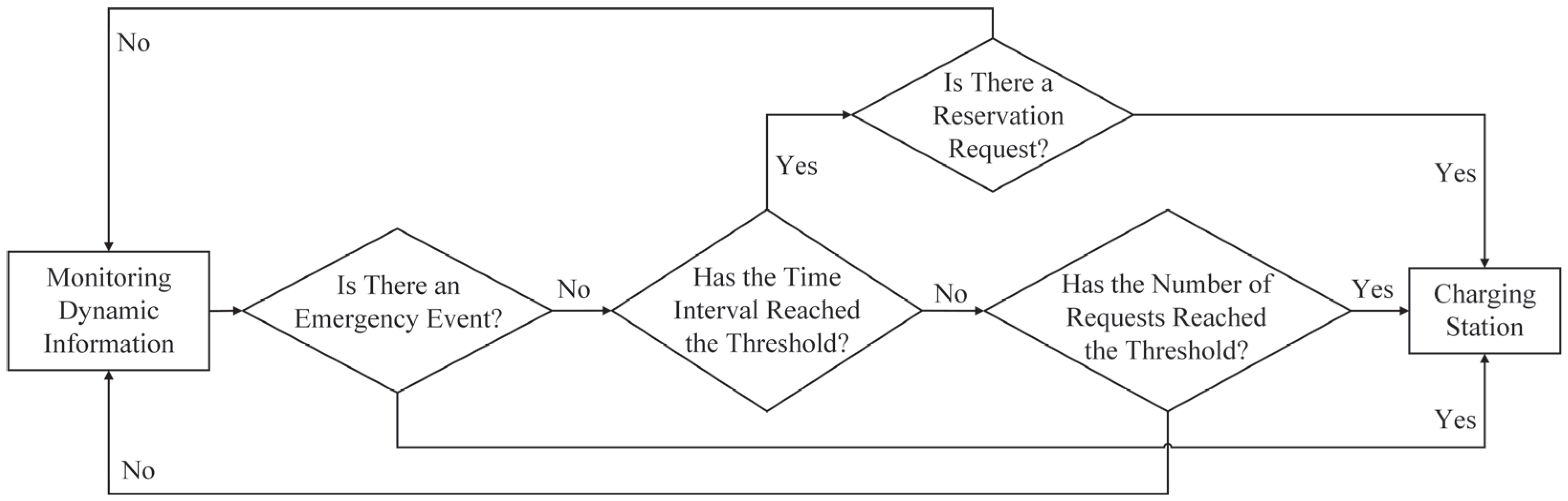 - When an emergency occurs, the event-driven strategy is adopted to end the current rolling horizon and process user requests as quickly as possible;
