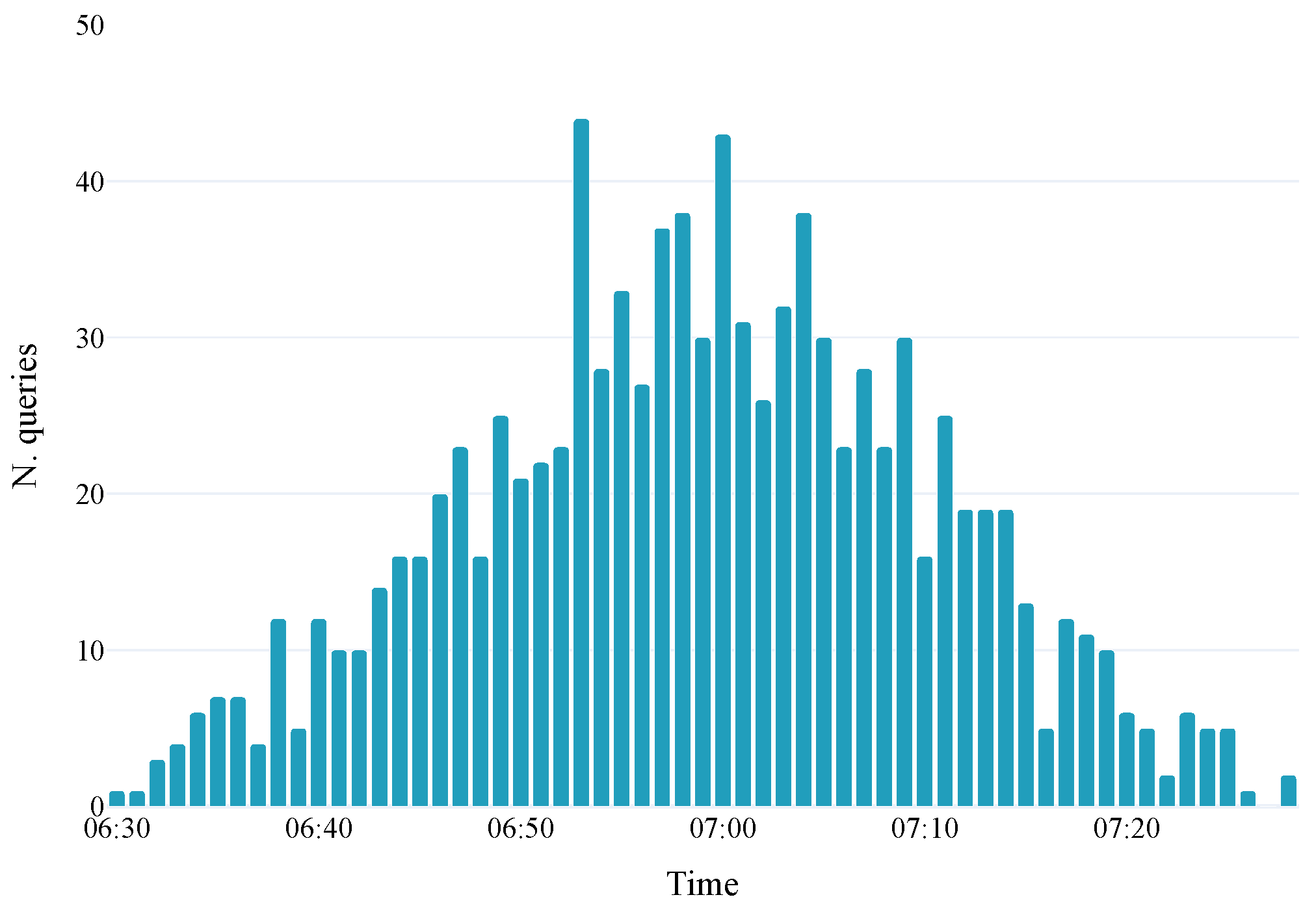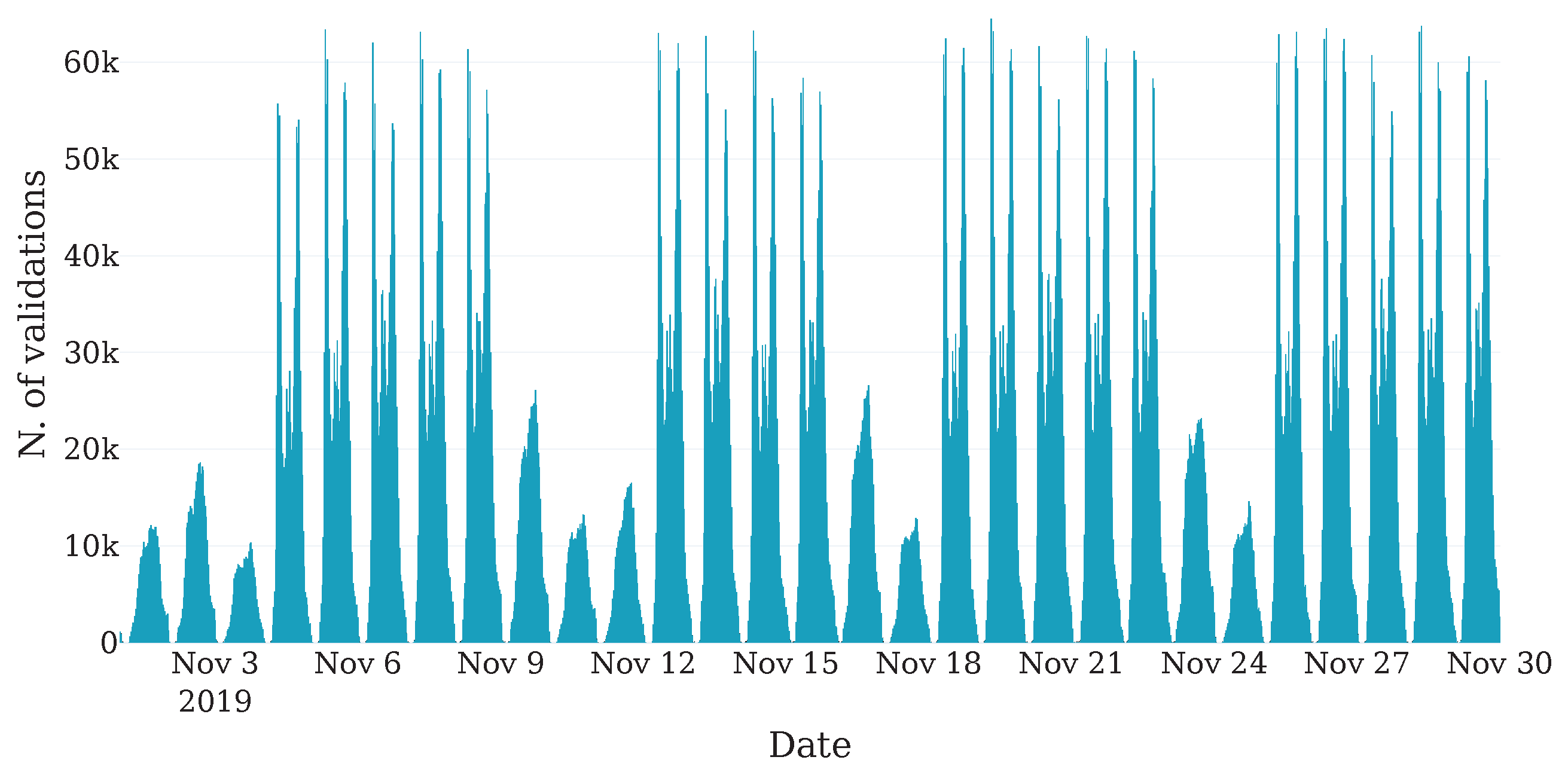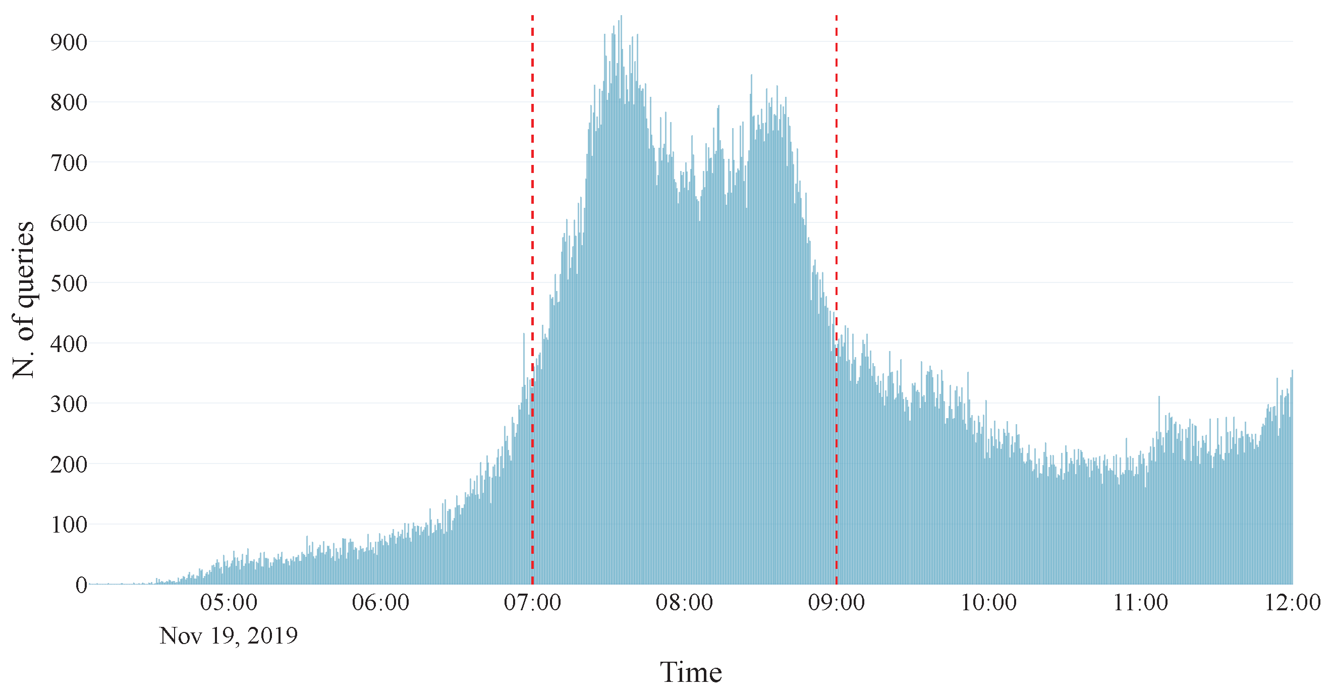 G, and arrive at the destination node, D. The objective was not to reproduce realistic demand diversity, but to observe how the strategies react to a sudden interruption under tightly constrained conditions. Currently, 1000 users are injected into the network, with some preferring the bus and others preferring the metro. However, both are willing to take the tram as a second choice. We created a validation dataset to develop a statistical behavior model, assigning a set number of validations to each 5-min time slot. Bus-preferring users validated their trips twice at each bus station and once at each tram station, while metro-preferring users validated twice at each metro station and once at each tram station. The crowding model relies on a moving average approach, while the behavioral model is statistical, as described in