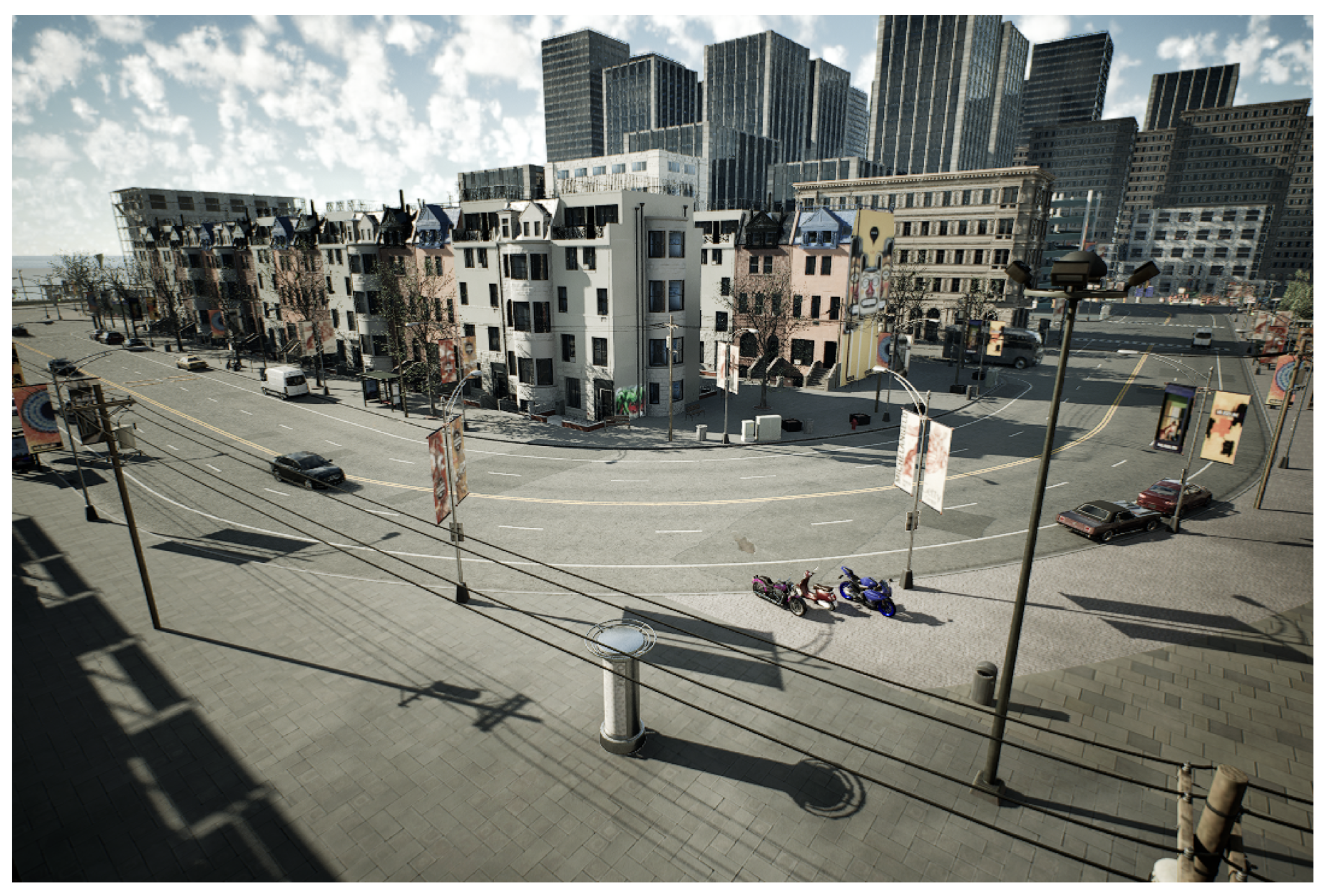 To generate data, a large number of dynamic agents, including cars, trucks, motorcycles, and pedestrians, were introduced using an automated simulation script. This setup ensured a natural traffic flow within the virtual environment, facilitating the collection of high-quality “regular driving” sequences.