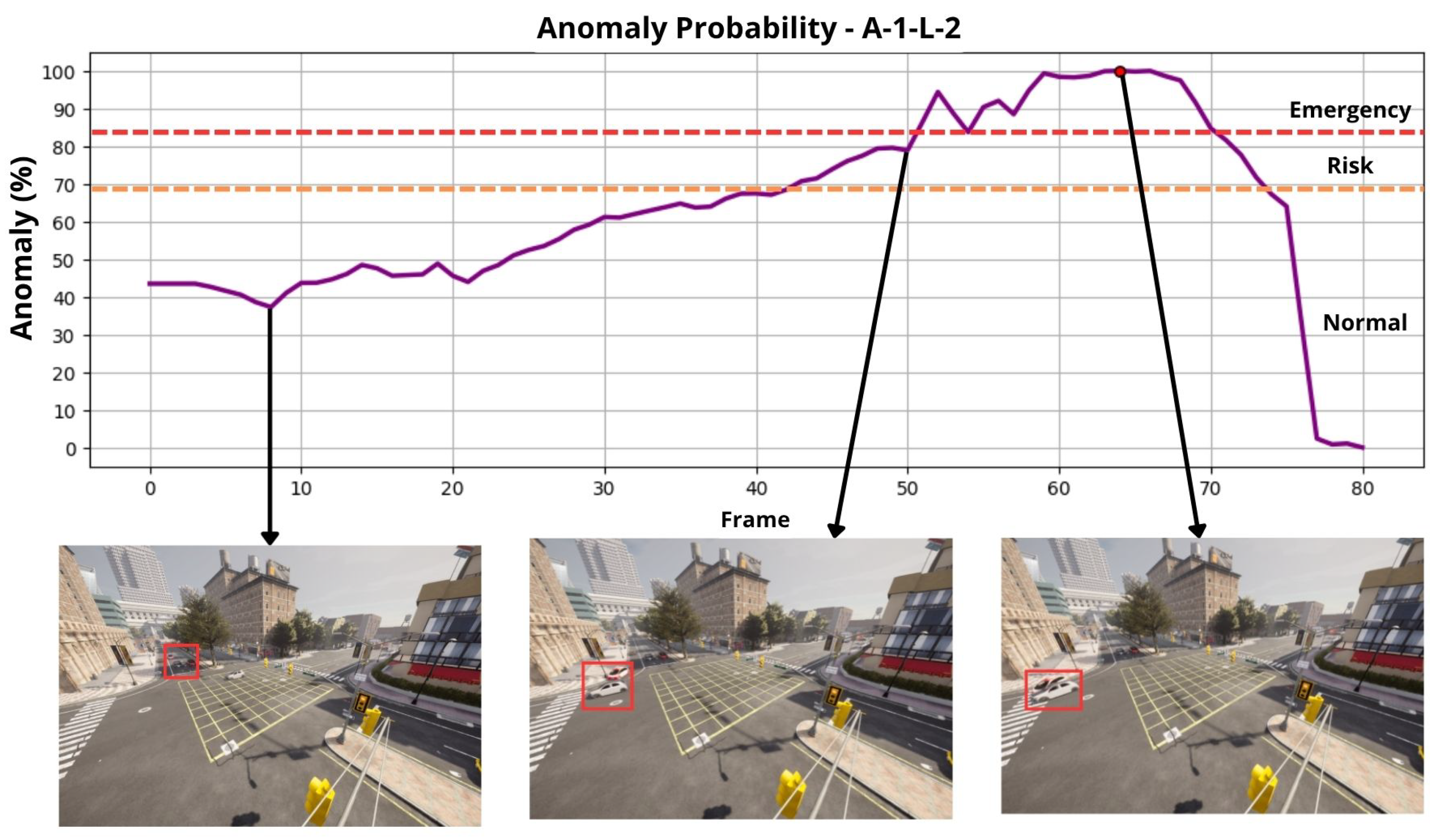 To evaluate the model’s performance in detecting traffic anomalies, a separate dataset was generated with a combination of normal and anomalous events. The anomalies were created manually by introducing controlled collisions between vehicles under various conditions. This dataset includes