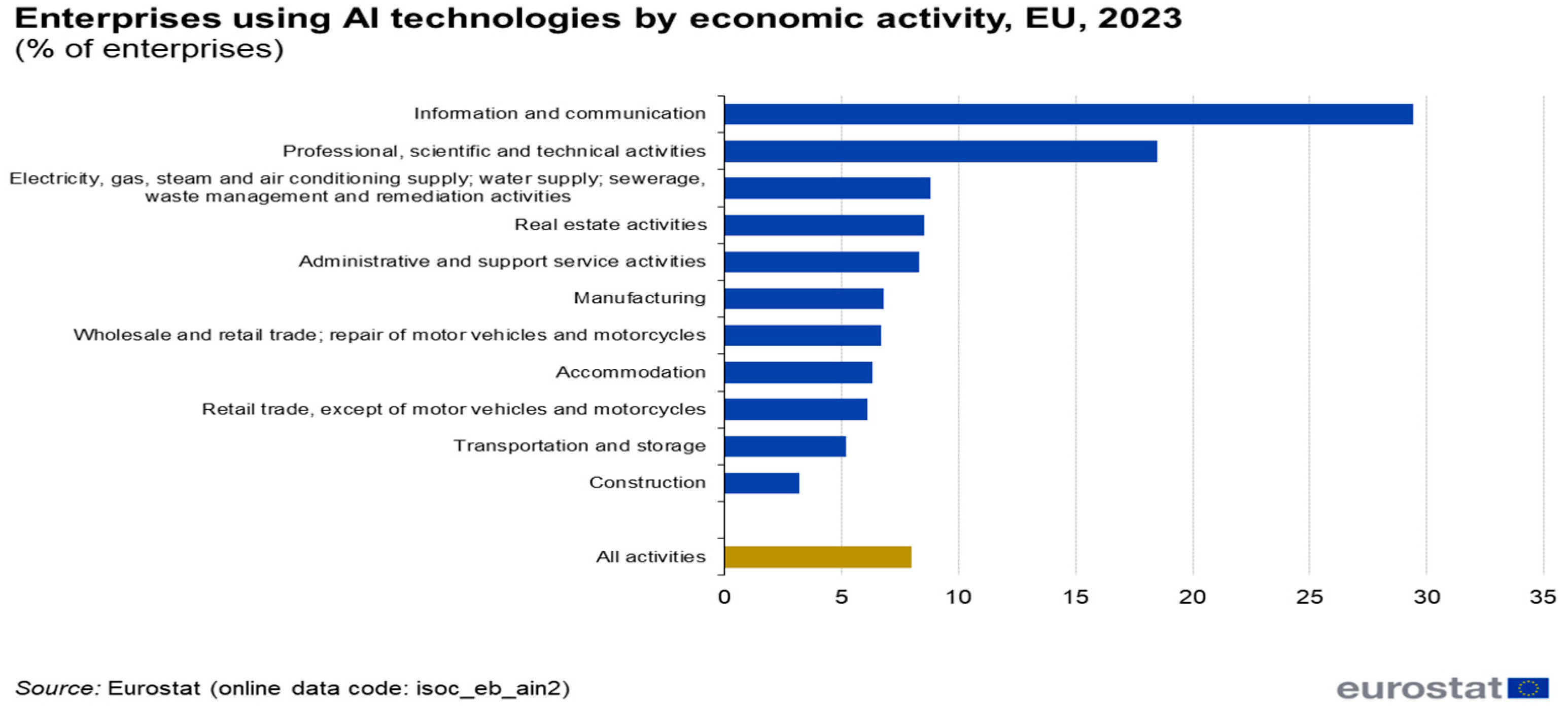 Figure 6). In all other activities, the share of enterprises using specific artificial intelligence technologies ranges from 0.9% to 3.9%.
