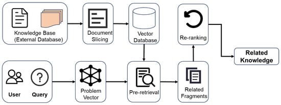 The module relies on an external knowledge base to provide the necessary domain-specific background information for supporting task classification and reasoning. The user input is first vectorized and then matched and ranked against the external knowledge base to retrieve candidate documents. These candidate documents are subsequently re-evaluated for precision, and the most relevant knowledge is selected. These related knowledge items are then passed to the LLM’s prompt, which generates the final answer. The implementation flow is shown in Figure 6.