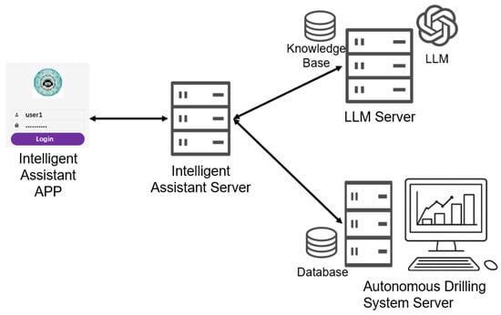 The human–machine collaboration service model proposed in this paper has been developed into a mobile application and deployed in two tunnel projects on Shanghai Metro Line 12, Sections 1 and 3, which use the ZATS to improve system performance. The intelligent assistant adopts a “light client + middle platform service” architecture: the mobile app serves as the front-end, with all functionalities provided by back-end services. The system’s physical topology is shown in Figure 8. The intelligent assistant app is responsible for the user interface, collecting user input, and displaying the assistant’s response, but it does not directly connect to the autonomous tunneling system. Instead, it communicates with the LLM server and the autonomous tunneling system server via the intelligent assistant server to handle tasks such as intention recognition and task execution.