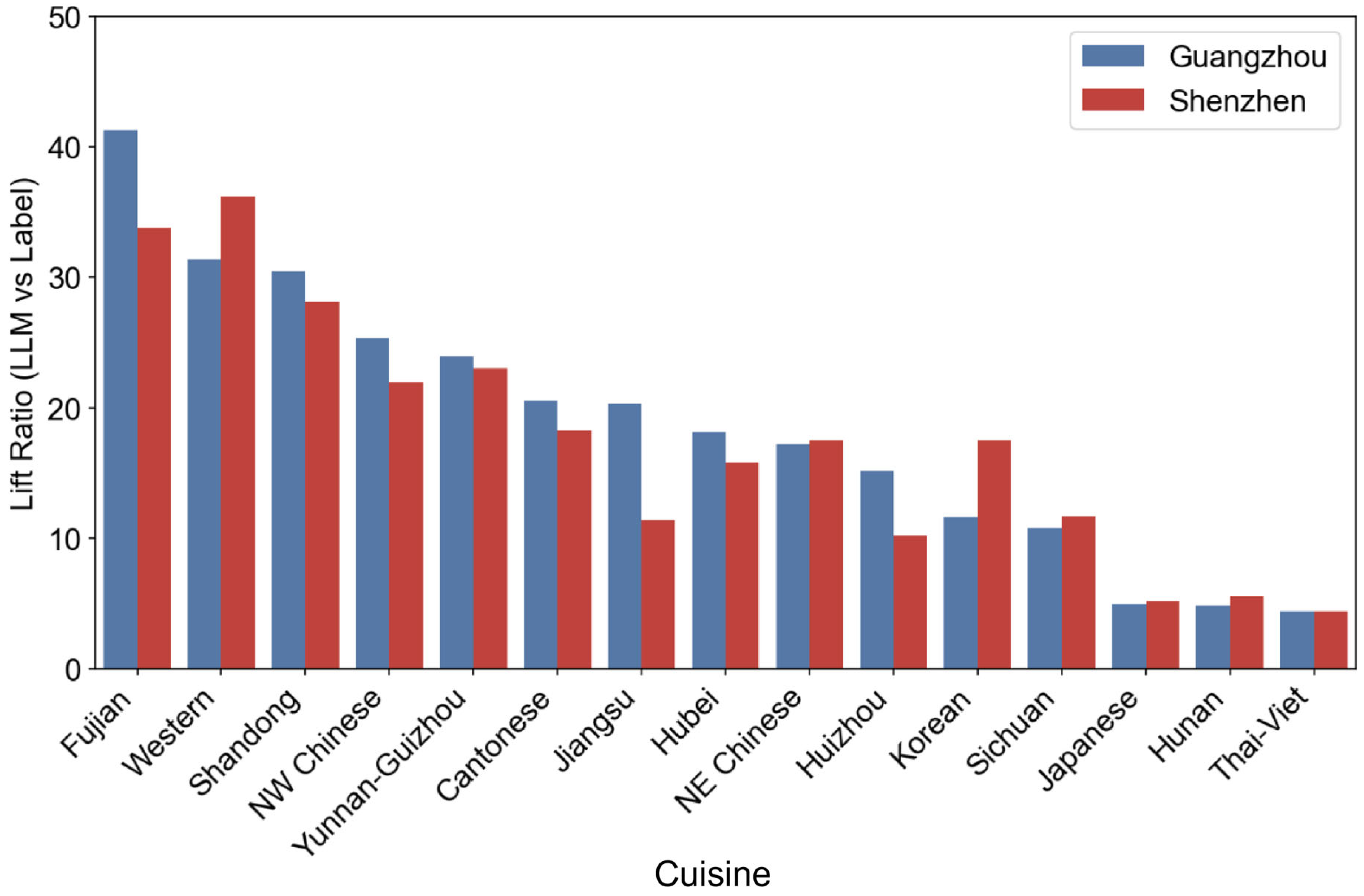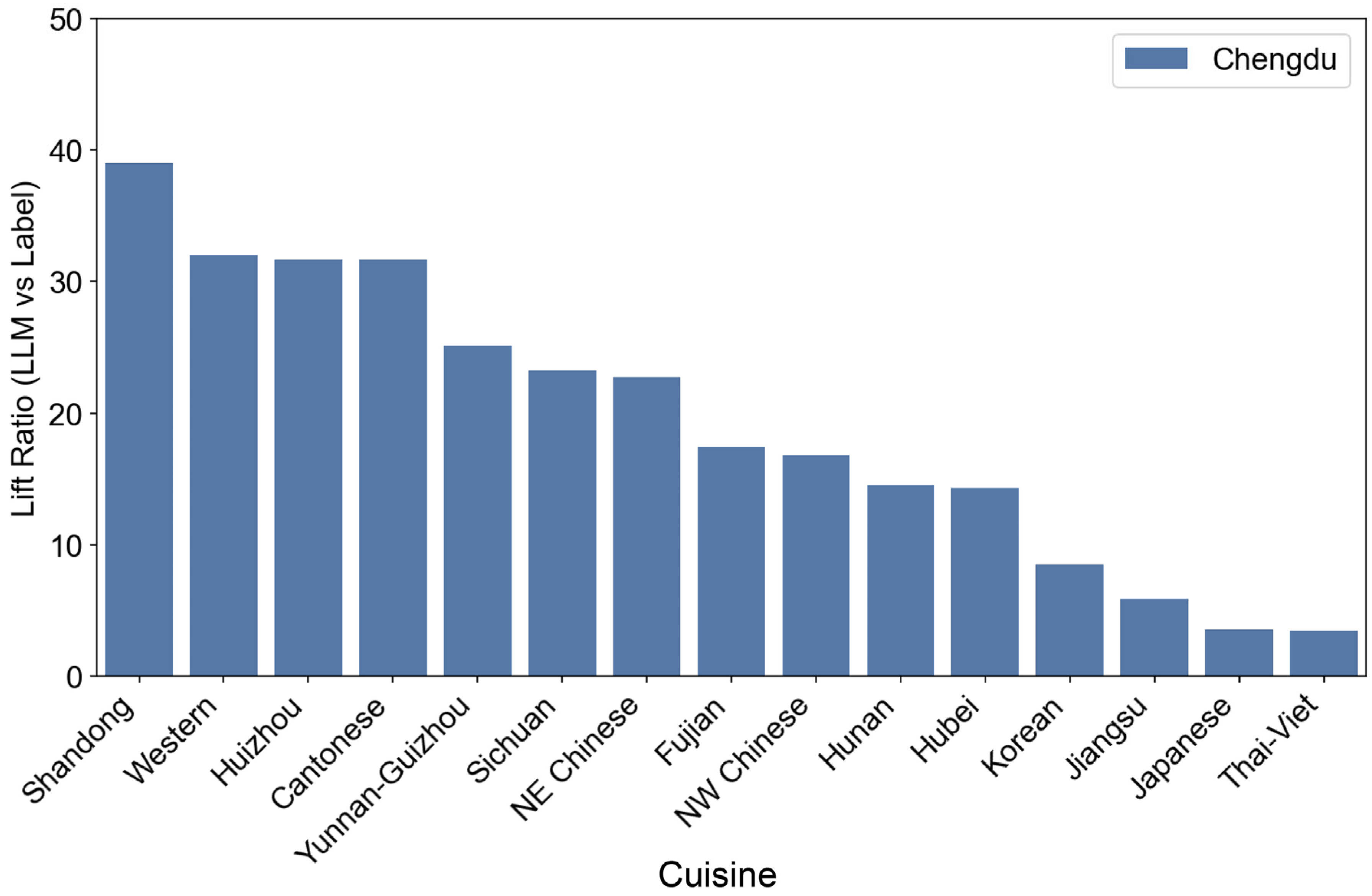 | Cuisine Name | Label Count | LLM Count | Lift Ratio |