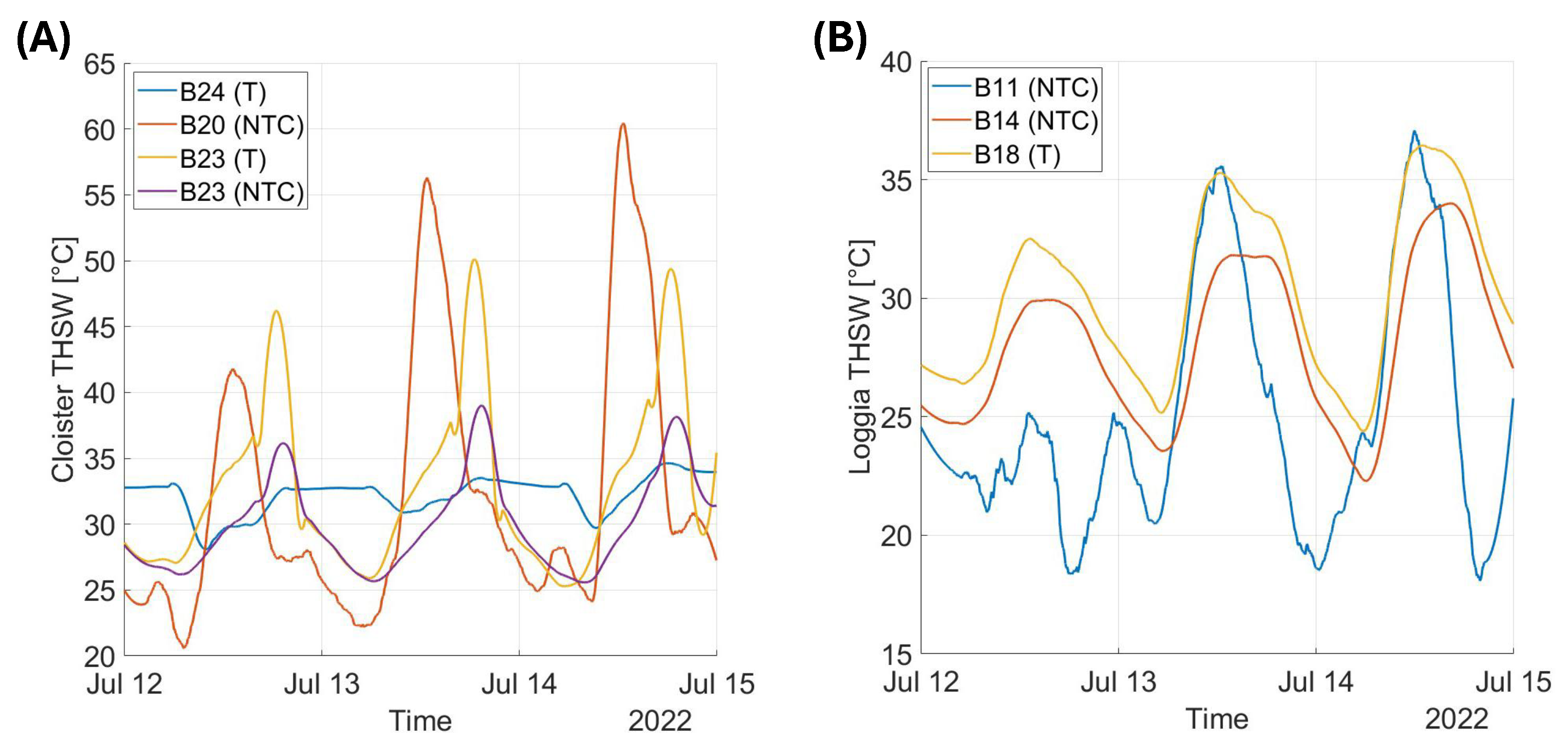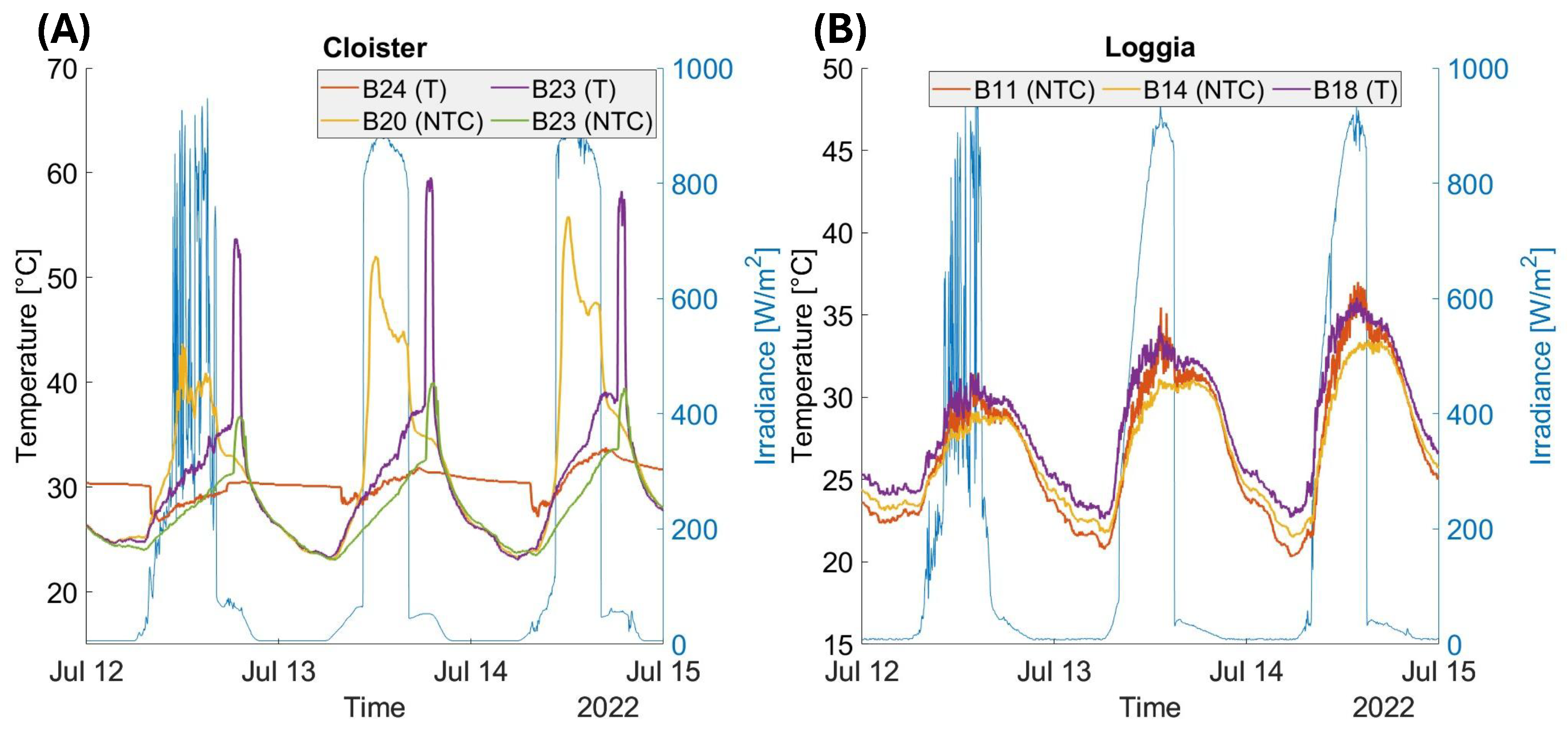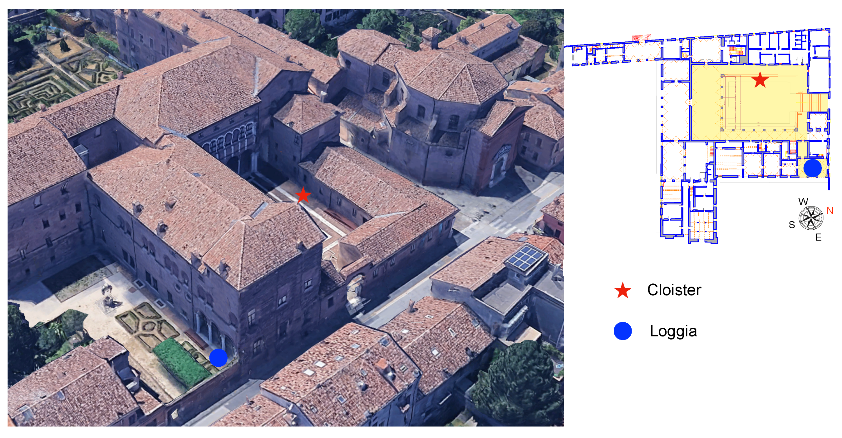 4.3. Microclimate Conditions in the Cloister and Loggia