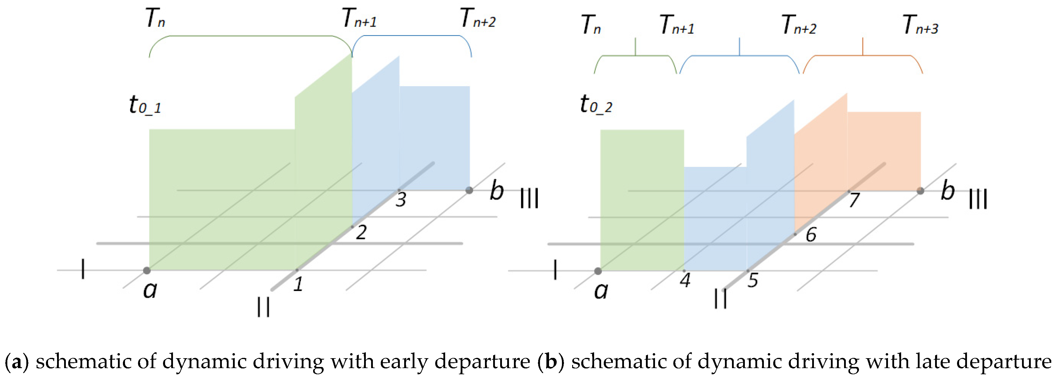 - Otherwise, segment the stage at the time period’s endpoint, and compute the cumulative distance and energy consumption from the origin (point ) to the stage’s end point.