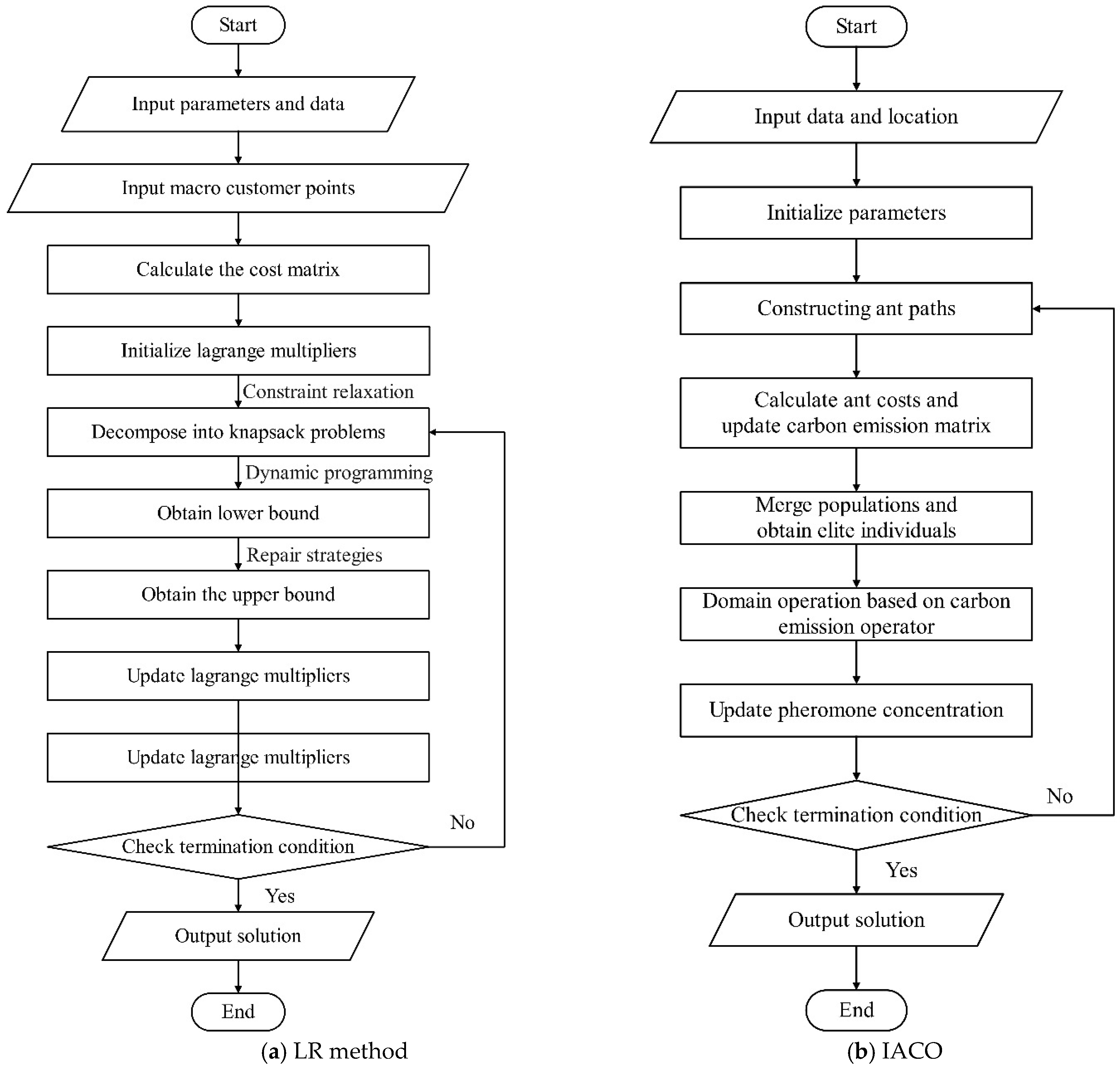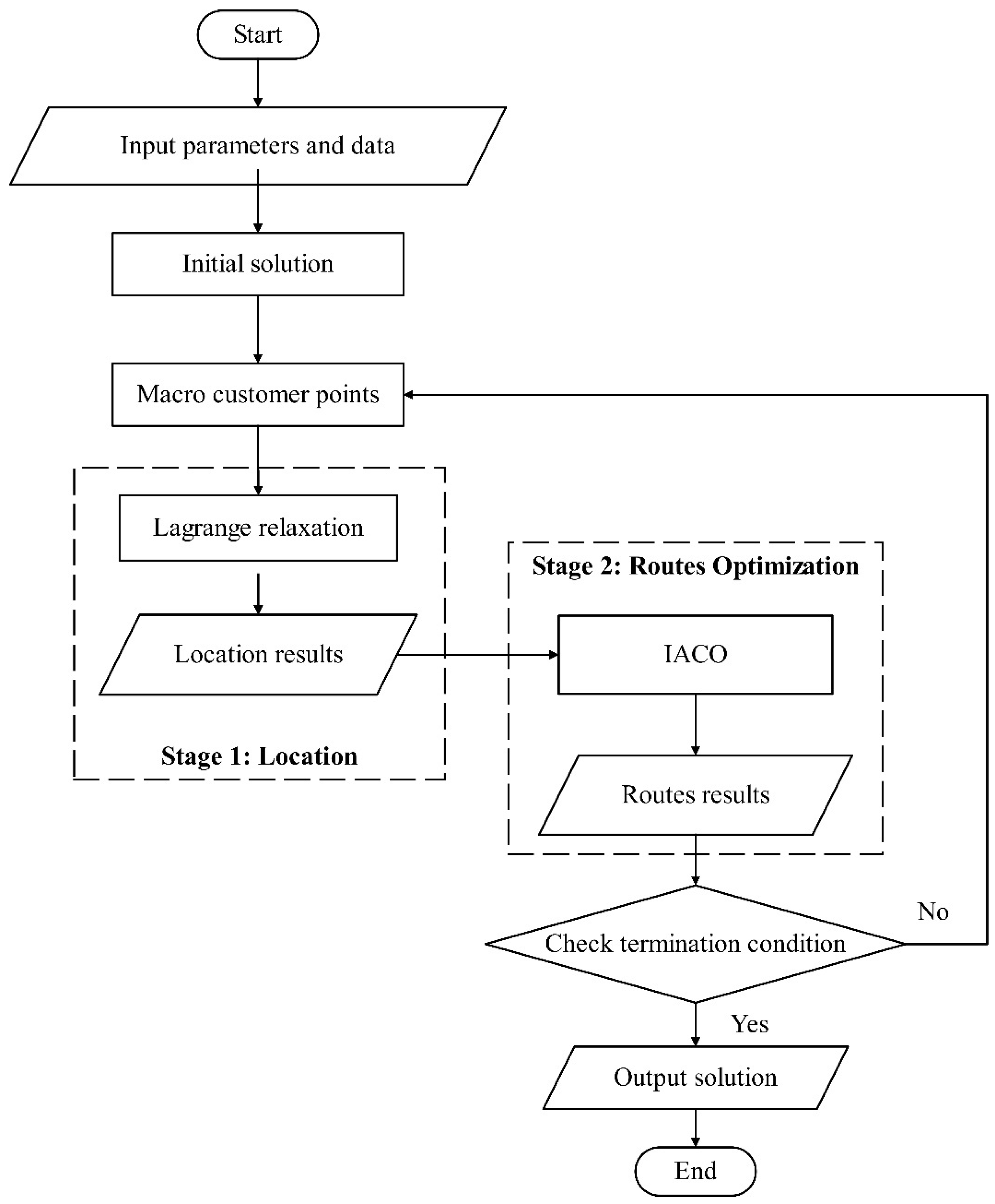 | Algorithm 1 Two-Stage Iteration-Lagrange Relaxation-Improved Ant Colony Optimization Algorithm | |
