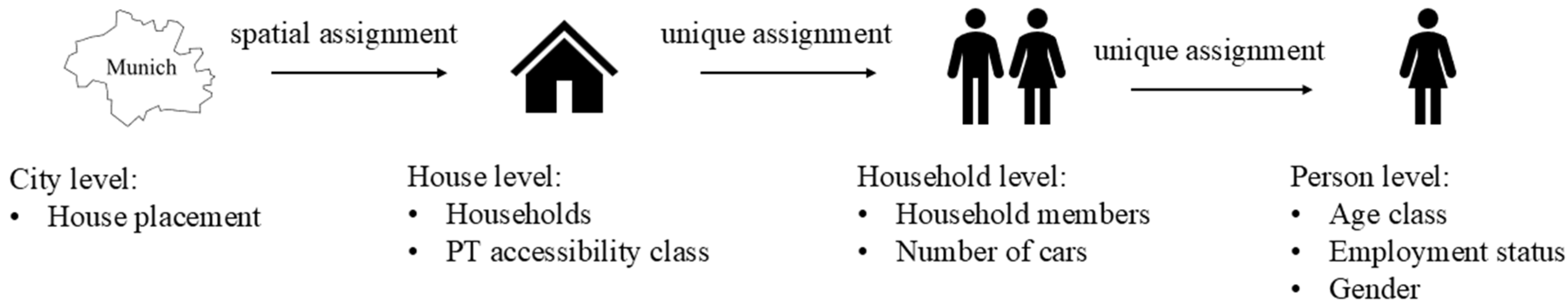 - Hörl, S.; Balac, M. Synthetic population and travel demand for Paris and Île-de-France based on open and publicly available data. Transp. Res. Part C Emerg. Technol. 2021, 130, 103291. [Google Scholar] [CrossRef]
