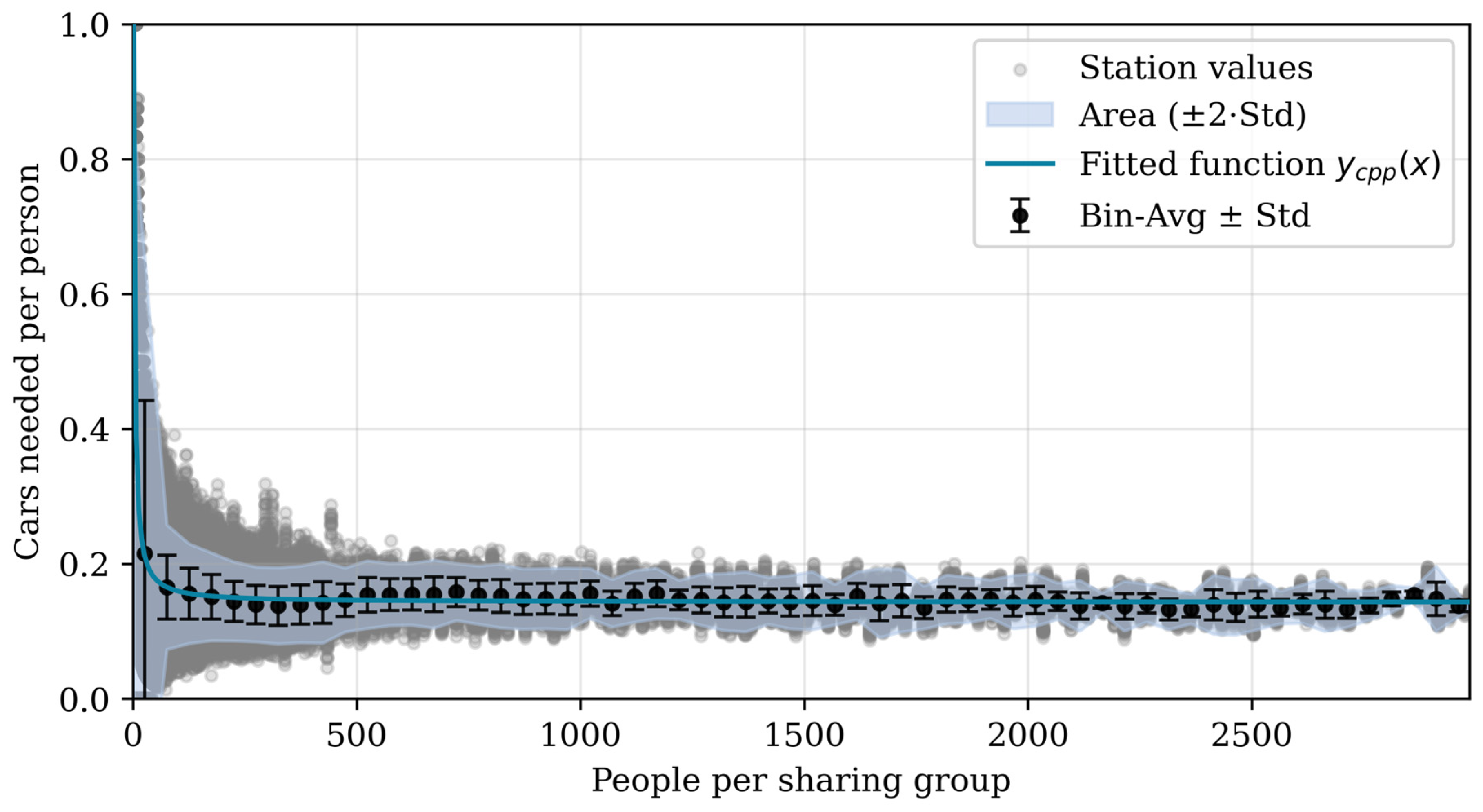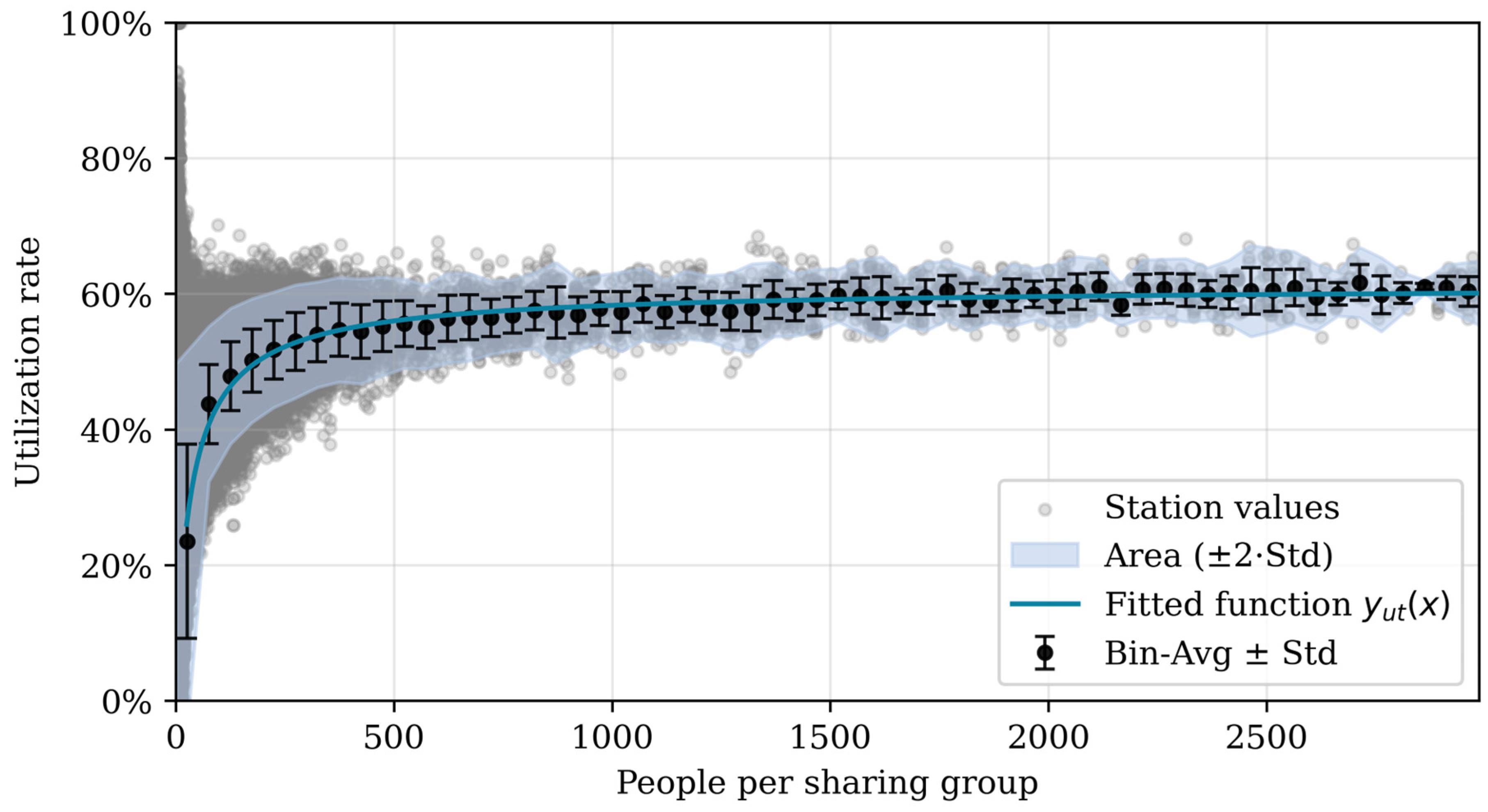 - 217 to 949 people is the ideal group size to share a car fleet.