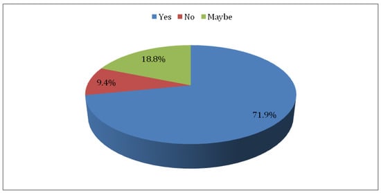 The respondents were asked for their opinion on digitalizing the agriculture and most of the farmers (71.9%) picked yes for digitalizing agriculture. In contrast to it, 18.8% of farmers were not sure about it and a minimal section of farmers (9.4%) were not ready to accept the change as shown in Figure 6.