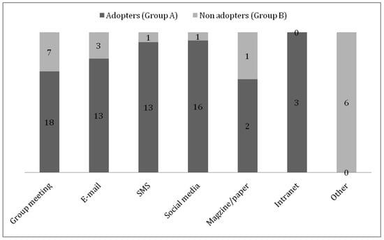 The response from the Irish farmers revealed that more farmers prefer group meeting as the common medium for communication. However, social media is the next medium where most of the farmers from Adopters communicate followed by E-mail, SMS, Intranet, paper/magazine. While Non-adopter farmers use Email as the second most medium to communicate with other farmers followed by social media, E-mail, SMS, and other medium like phone calling, in person etc., as shown in Figure 15.