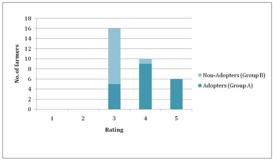 However, the same percentage of non-adopter farmers as in Figure 3 were likely to use and learn farming related application for controlling and monitoring different areas on farms such as tracking all the transaction, weather, soil, crop/animal information of their farm through a mobile platform.
