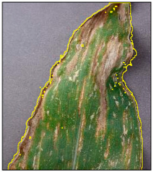The maize sample images to be tested were selected from the database of the images that were collected from the maize field, as previously explained. The tested data set consisted of 12 Northern Corn Leaf Blight (Exserohilum), 12 Gray Leaf Spot (Cerospora), and 12 Common Rust (Puccinia sorghi) images of maize diseases. A total of 36 diseased test images was used to conduct the proposed study. For best results, the background of the tested images needed to be of any colour selected in the range of 0–255 of the gray scale.