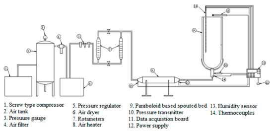 - Devahastin, S.; Mujumdar, A.S. Some hydrodynamic and mixing characteristics of a pulsed spouted bed dryer. Powder Technol. 2001, 117, 189–197. [Google Scholar] [CrossRef]