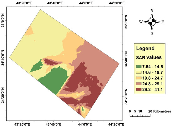 Interpolation map for sodium adsorption ratio (SAR) values of the study area.
