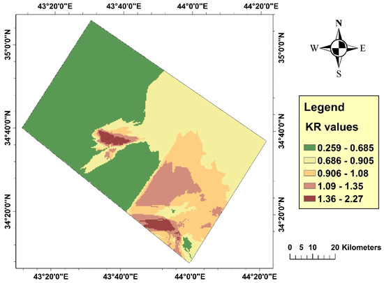 Interpolation map for Kelly’s Ratio (KR) values of the study area.