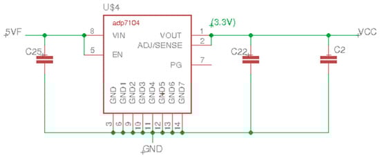 Figure 5) that provides 3.3 V power to the micro-controller. Corresponding component values for the schematics shown in