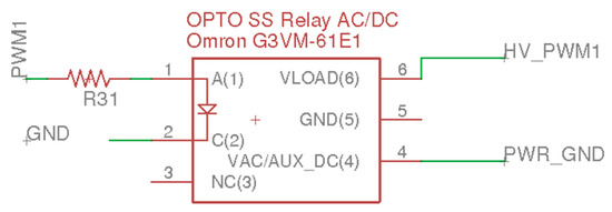 Figure 14, PWR_GND provides a direct connection to the harvester’s ground when the solid-state relay is activated by the micro-controller, which then internally connects HV_PWM1 to PWR_GND. Corresponding component values for the schematic shown in