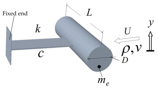 The mass per unit length of the cantilever beam connected to the cylinder system is , the transversal displacement of the cylinder is determined by the interaction of inertial force, damping force, stiffness, and lift force, which can be expressed as