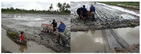 Vietnam is the third largest rice exporting country in the world and more than 90% of Vietnamese rice for export is produced in the Mekong Delta [,]; Vietnam was even a rice-importing country before 1988 []. In recent years, many Asian countries, such as the Philippines and Indonesia, are continuously rice-importing countries. Vietnam is the top rice supplier to those countries. However, a big part of rice production processes in Vietnam still relies on manual labor work. Moreover, the quality of Vietnamese rice is evaluated as low grade in the international rice trade market (Figure 1) [,]. Therefore, we conclude that Vietnam needs to improve its mechanization of rice production in order to improve rice quality as well as productivity.