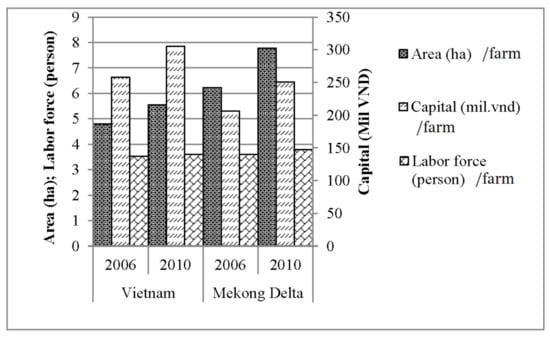 - Takahashi, R. Trend of Large Farm in Vietnam and Employment Absorption (In Japanese: Gendai Vietnam Nougyo ni Okeru Daikibo Keieika to Koyou Kyushu). In Agricultural Development in Vietnam—Changing Economy in Farming Village (In Japanese: Vietnam no Nougyo Hatten—Koudo Keizai Seichouka no Nouson Keizai no Hensen); Sakata, S., Ed.; IDE: Chiba, Japan, 2012; 33p. [Google Scholar]