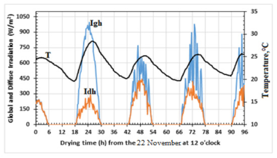29. Bennamoun, L.; Belhamri, A. Numerical simulation of drying under variable external conditions: Application to solar drying of seedless grapes. J. Food Eng. 2006, 76, 179–187. [Google Scholar] [CrossRef]