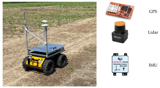 The platform is powerful enough to handle payloads of up to 75 kg and can operate at speeds of 1 m per second. It has a 24 V direct current (DC) lead-acid battery which can provide 2 h of operation. Two new lithium polymer batteries with 6 cells each and a 10Ah rating provide up to 3 h of operation. Husky is equipped with IMU (UM7, CH Robotics, Victoria, Australia), GPS (Swiftnav, Swift Navigation, CA, USA), individual steering motors and encoders for each wheel for basic navigation, and a laser scanner (UST-10LX, Hokuyo, Osaka, Japan) for obstacle detection. The IMU has an Extended Kalmat Filter (EKF) estimate rate of 500 Hz, with ±2 degrees for static and ±4 degrees accuracy in dynamic pitch and roll. The RTK GPS supports multiple bands (GPS L1/L2, GLONASS G1/G2, BeiDou B1/B2, and Galileo E1/E2), enabling faster convergence times to high precision mode. It has a maximum of 10 Hz solution rates and has flexible interfaces, including Universal Asynchronous Receiver/Transmitter (UART), Ethernet, Controller Area Network (CAN), and Universal Serial Bus (USB). The lidar has a scanning range from 0.02~10 m with ±40 mm accuracy. It has an angular resolution of 0.25 degree and a scanning frequency of 40 Hz. It used an Ethernet as its primary communication. The lidar and IMU were configured for an update rate of 10 Hz, while the GPS was set to 5 Hz. The robot can be programmed to perform specific tasks like mapping, navigation, and obstacle avoidance through its onboard PC (mini-ITX) running on the Ubuntu 16.04 operating system and the Robot Operating System (ROS, Kinetic version) framework. A mini-liquid crystal display (LCD) screen, keyboard, and pointing device are connected to the onboard PC allowing the user to easily write and test code, view and perform operations.
