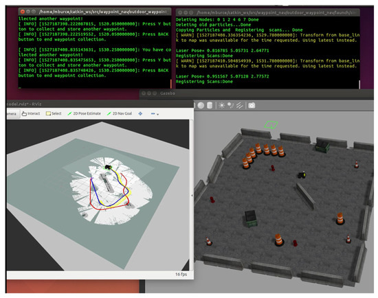 In this study, the field′s digital map was generated using a GMapping algorithm, a variant of simultaneous localization and mapping (SLAM) algorithm [36,37]. GMapping involved fusing the robot’s odometry, GPS, IMU, and laser scanner readings using Kalman filters and Rao-Blackwell particle filters (RBPF) to determine the robot’s current position and orientation on the map. A custom-built global/local planner package was then developed suitable for steering the robot within plant rows and avoiding obstacles using the laser scanner. To navigate, a graphical user interface (GUI) showing the map of the field allows users to either click points/segments on the map or hardcode the coordinates where the robot will navigate autonomously. These points/segments could be the locations of the cotton bolls to be harvested.