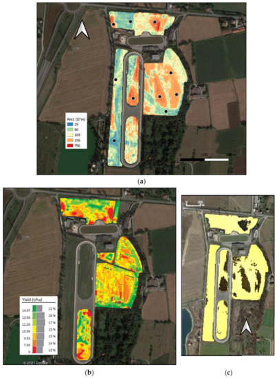 Therefore, the two-zone clustering has the advantage of obtaining more homogeneous management zones. In greater detail, the output of the analysis shows that, no matter the grown crop, soil characteristics and variability identify zones where the yield is significantly far from optimal (the black zones in Figure 3c), and this means that the decisions to be taken will necessarily involve the specific knowledge of the variables impairing the yield in such zones.