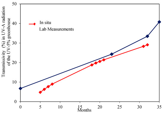 Reduction in Blockage Property of UV-Blocking Greenhouse Covering Material: In Situ and Lab Measurement Comparison