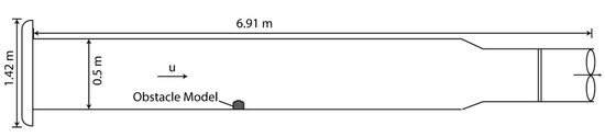 A metal constructed wind tunnel was used in this study (Figure 1). The wind tunnel’s total length was 6.91 m; the cross-section was square with a side length of 0.50 m; and it was previously described in detail in the study of Ntinas et al. [23]. The greenhouse-like obstacle used in this study has an arched roof and has a total height of 0.063 m.