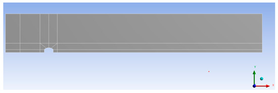 The analysis of the air fluid dynamics behavior over the obstacle involved a series of distinct steps, starting with partitioning the area of the tunnel model under study. It should be emphasized at this point that, as shown in Figure 3, special attention was given to the separation of the area near the obstacle to eliminate problems with the grid development in this area. The turbulent phenomena under investigation were expected to occur mainly in this area. The creation of a well-developed partition of the grid ensured the greatest possible reliability regarding the convergence of solutions in the transmission functions for neighboring data nodes. Otherwise, there was a risk of generating results describing phenomena which do not exist. The nodes numbered 9763, and the elements 9440. Additional thickening of the computer grid showed that it does not affect the solution of the problem.