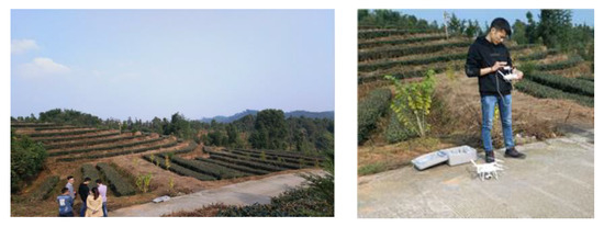 The tea garden images in this paper were all obtained from a tea garden experimental field (Figure 1) located in Yanshan, Yinbin, Sichuan, China (104°667′ W, 28°915′ N). The test area is about 9 mu, with an average altitude of about 530 m. The drone (Phantom 3SE, DJI, Shenzhen, China) was controlled by a trained drone operator from the Yibin Agricultural Machinery Institute. First, the operator used a remote controller to control the drone to fly to the desired area. Then, he adjusted the drone at the certain heights (30, 60, 100 m in the study). Finally, he stopped moving the drone and took the pictures in a relatively stationary state in the air. All the images were manually taken using a camera (1 inch CMOS, FOV: 77°, equivalent focal length: 28 mm, f/2.8–f/11, autofocus, electronic shutter: 8 to 1/8000 s) on the drone. The day we conducted the experiment was cloudy and the light was relatively stable.