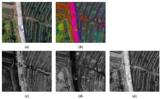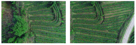 Figure 15 presents the comparison images of single images. Figure 16 presents the results of the application of the algorithm to the tea garden mosaic images.