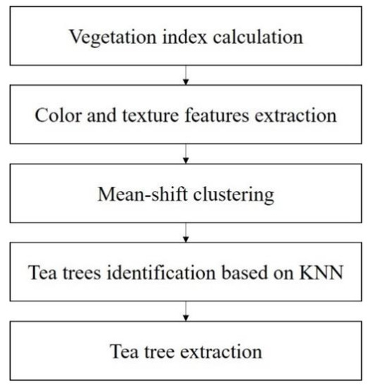 By using vegetation indices, green plants in the images can be extracted. Not all the green plants need to be extracted; this is only necessary for tea trees.