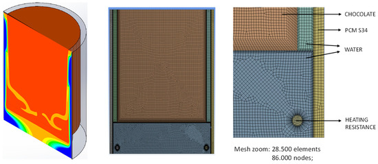 - The numerical model and the experimental tests also converged in the formation of temperature gradients in the chocolate mass during the charge period, and in the inversion of direction during the discharge process.