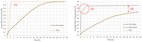- Case 2–Discharge: starting at Case 1 fully charged and the chocolate mix fully melted at 34 °C.