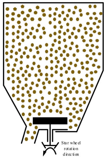 - The star wheel-type fertilizer extractor is used to apply crystalline and dry powder fertilizers (Figure 7). During the fertilization operation, the rotating star wheel continuously directs fertilizer from the fertilizer tank into the fertilizer pipe. The adjustment of the discharge quantity of the star wheel-type fertilizer exhauster can be realized by adjusting the opening of the discharge valve or changing the speed of the star wheel. Under normal circumstances, the bottom of the fertilizer tank is movable to facilitate the cleaning of excess fertilizer. The star wheel fertilizer exhauster is easy to disassemble and has low troubleshooting difficulty [107].