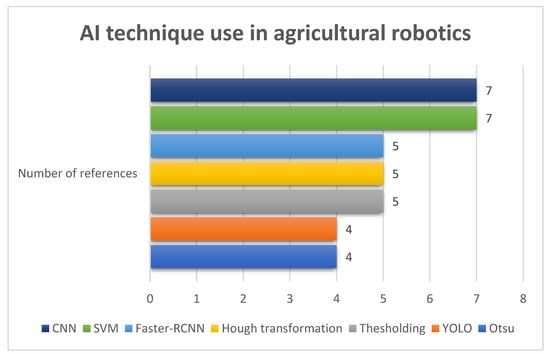 Some of the most critical issues agricultural robots must face are related to the ability of the robot to “perceive” its surroundings (vision system) and the intelligence not only to understand it but also to control itself and the connected implements [1]. As a result, breakthroughs in vision systems and artificial intelligence (AI) to improve robot perception have occurred in recent years. Various sensing devices have been tested and are currently used for this specific task, ranging from bump sensors to soil sensors and from sonar systems to RGB cameras, each of which comes with its own benefits and limitations, thus making them suitable for specific agricultural tasks. The same applies to the multitude of AI algorithms deployed, ranging from highly complex and computationally intensive to less complex and faster to execute.